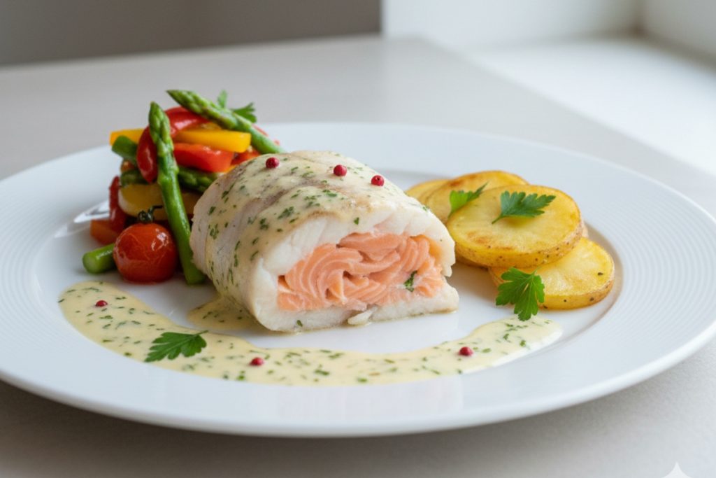 La merluza rellena de salmón pide una presentación cuidada, pero sin extravagancias. Al fin y al cabo, el ingrediente principal ya lo dice todo. Basta un corte limpio, una salsa bien colocada y un acompañamiento equilibrado para convertir el plato en una experiencia.